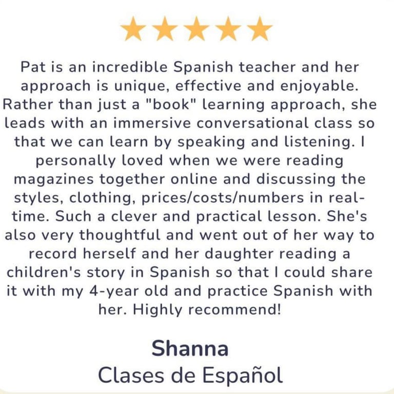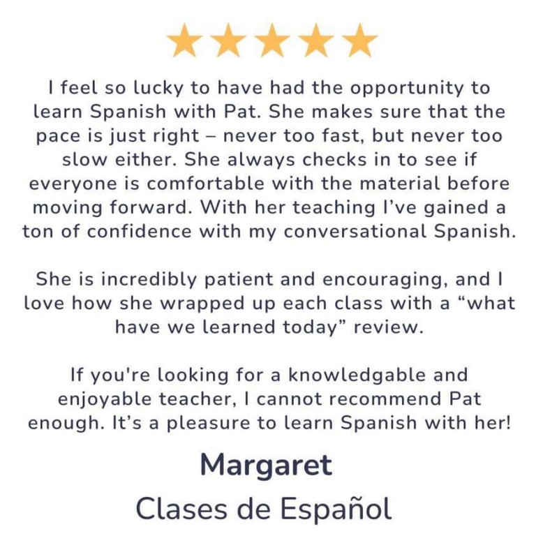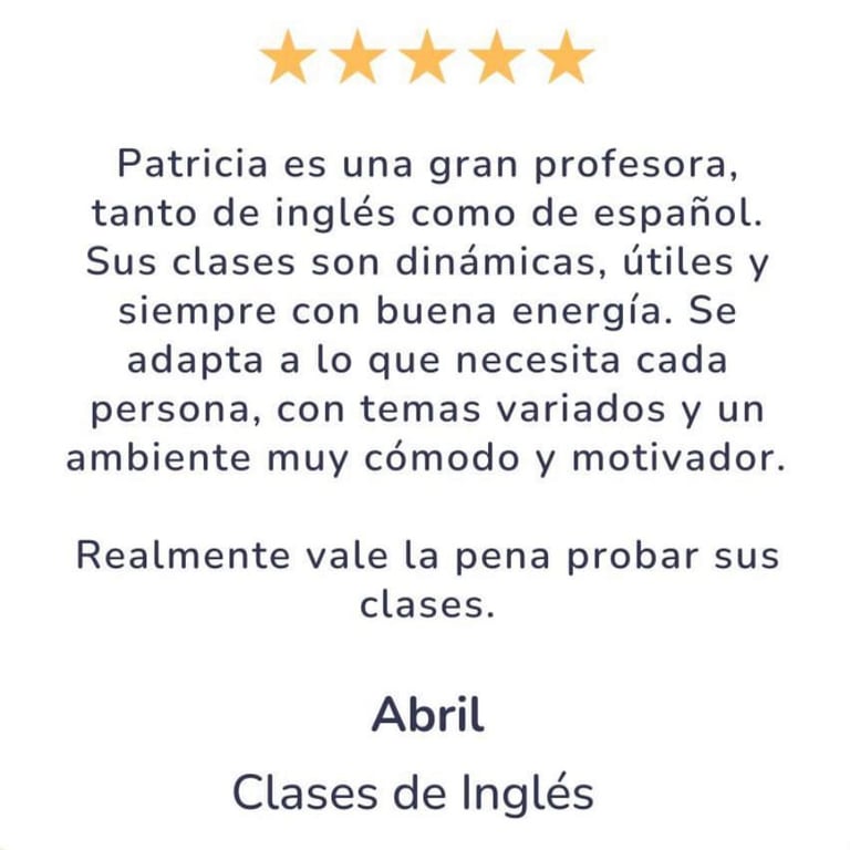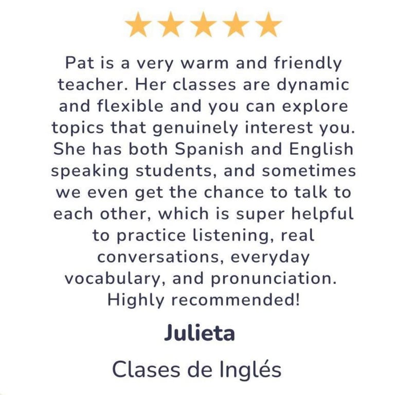Clases enfocadas en la conversación y el uso real del idioma. Acompañamiento cercano, ejemplos prácticos y situaciones cotidianas para ganar seguridad al hablar.